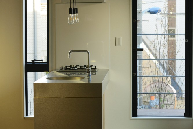 | 投資・不動産目線の工夫 | 不動産投資ではめずらしい借地の計画。 ワンルームをあえて、小割にせず30㎡とすることで、ゆとりのある空間とし周辺のワンルームとの差別化を図った。 部屋ごとに充実した造作収納も設置。キッチンもミニキッチンではなく、対面キッチンのため食事も出来る奥行きとすることで2人入居も想定した。 |